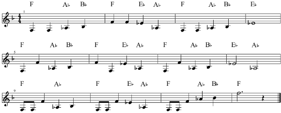 F Rock scale ဆိုသည္မွာ F major scale မွ 3rd tone(A) ႏွင့္ 7th tone(E) တို႔ကုိ 1-flat ျပဳလုပ္ျပီး တီးျခင္းပါ ။ F major scale ႏွင့္ Rock scale မ်ားရဲ႔ ရြတ္ဆိုပုံကို ဇယားတြင္ေရးျပထားပါတယ္ ။