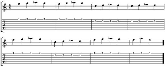 ေနာက္ဆံုးဘားေတြမွာ ေကာ့ဒ္ျပတ္ေလးေတြပါဝင္ပါတယ္ ။ သတိထားျပီး တီးလိုက္ပါအံုး ။ ေနာက္ေလ့က်င့္ခန္းတစ္ခုကေတာ့ Minor Blues solo ေလးျဖစ္ပါတယ္ ။ အင္မတန္ တီးေကာင္းပါတယ္ ။