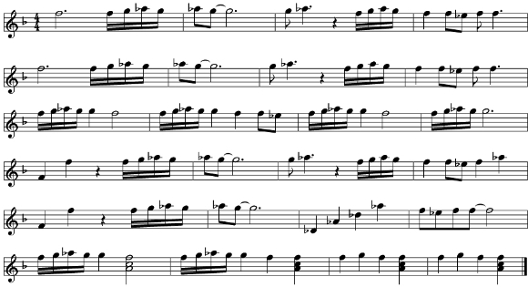F Rock scale ဆိုသည္မွာ F major scale မွ 3rd tone(A) ႏွင့္ 7th tone(E) တို႔ကုိ 1-flat ျပဳလုပ္ျပီး တီးျခင္းပါ ။ F major scale ႏွင့္ Rock scale မ်ားရဲ႔ ရြတ္ဆိုပုံကို ဇယားတြင္ေရးျပထားပါတယ္ ။